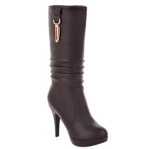 ENMAYER Women's Brown Closed Round Toe Pu Soft Material Short Plush Solid Boots With Metal Fittings 5.5 B(M) US