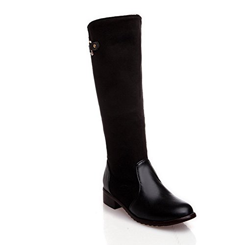WeenFashion Girls Round Closed Toe Low Heels PU Short Plush Solid Boots with Buckle, Black, 10 B(M) US