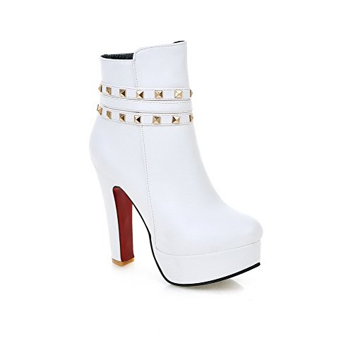 AalarDom Women's Solid High Heels Round Closed Toe Pu Zipper Boots, White, 35 is one of the