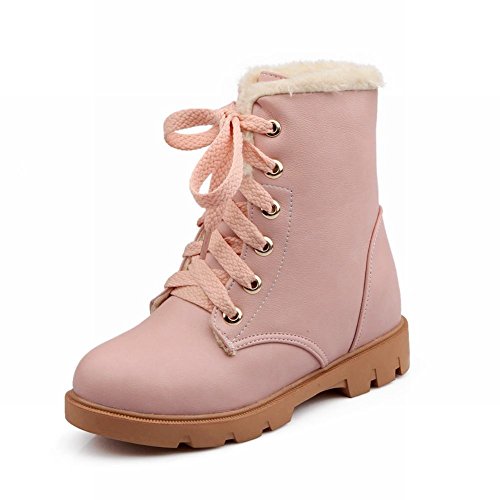 Latasa Women's Fashion Lace-up Mid Chunky Heel Ankle-high Snow Winter Boots (6, pink)