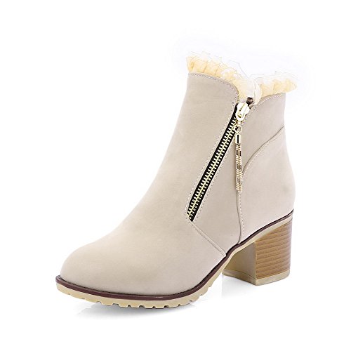 AllhqFashion Women's Frosted Zipper Round Closed Toe Kitten Heels Low Top Boots, Beige, 38 is one of the Cheap Winter Boots Women in the market. This Top product prepares for you to meet your needs.