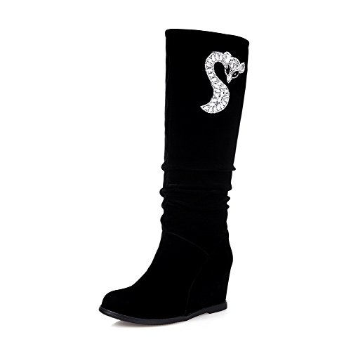 Maymeenth Women's Kitten-Heels Frosted Solid Boots with Wedge and Slipping Sole, Black, 33