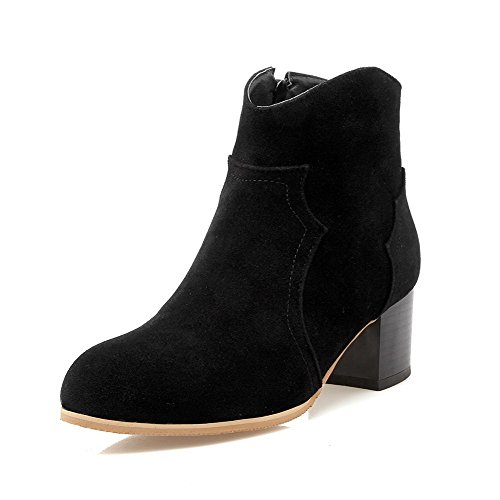 WeiPoot Women's Solid Imitated Suede Kitten-Heels Zipper Round Closed Toe Boots, Black, 33