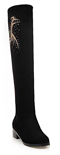 CHFSO Women's Stylish Solid Round Toe Mid Chunky Heel Knee High Knight Boots Black 9 B(M) US is one of the