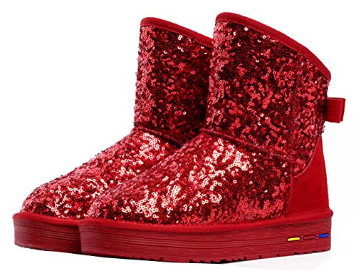 Inclined Plane Sequins In-tube Snow Boots Women Winter Snow Boots Thick Crust Leather Boots (5.5, Red) is one of the Women's Warm Winter Boots in the market. This Most Favourite item presents for you to please your wish.