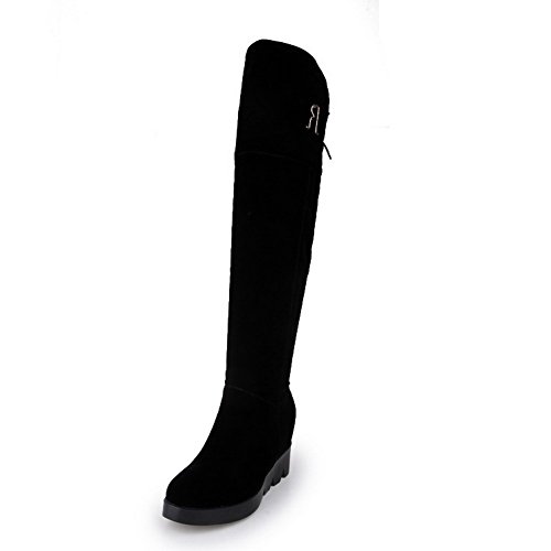 WeiPoot Ladies Frosted Solid Closed-Toe Boots with Platform and Slipping Sole, Black, 38