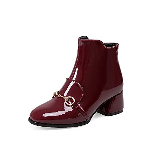 AllhqFashion Women's Low-Top Solid Zipper Square Closed Toe Kitten-Heels Boots, Claret, 43